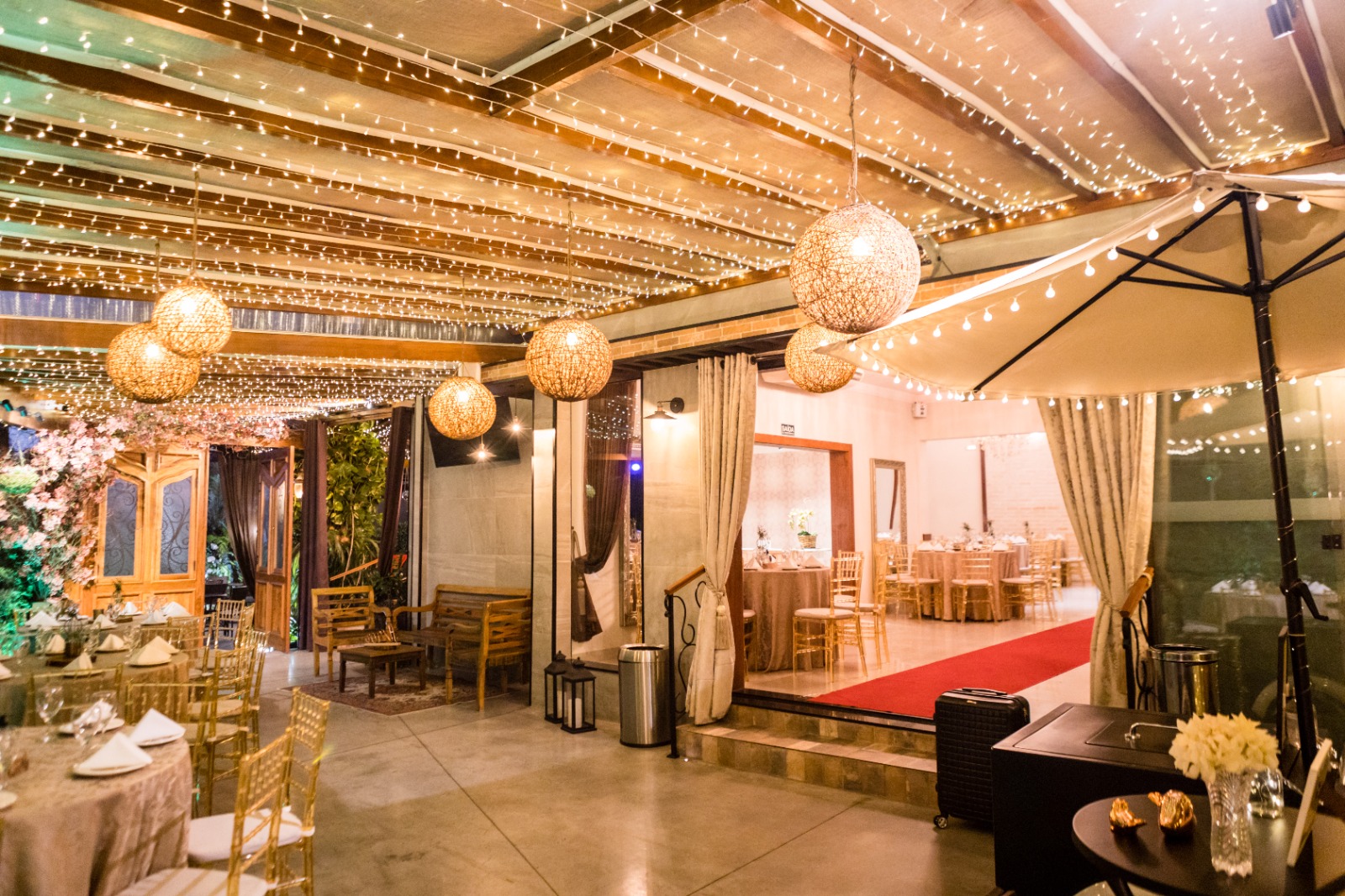 O layout do nosso espaço é totalmente versátil e pode ser transformado de acordo com as suas preferências. Temos a possibilidade de realizar cerimônias no nosso salão principal ou área externa, que conta com um jardim deslumbrante e iluminado.